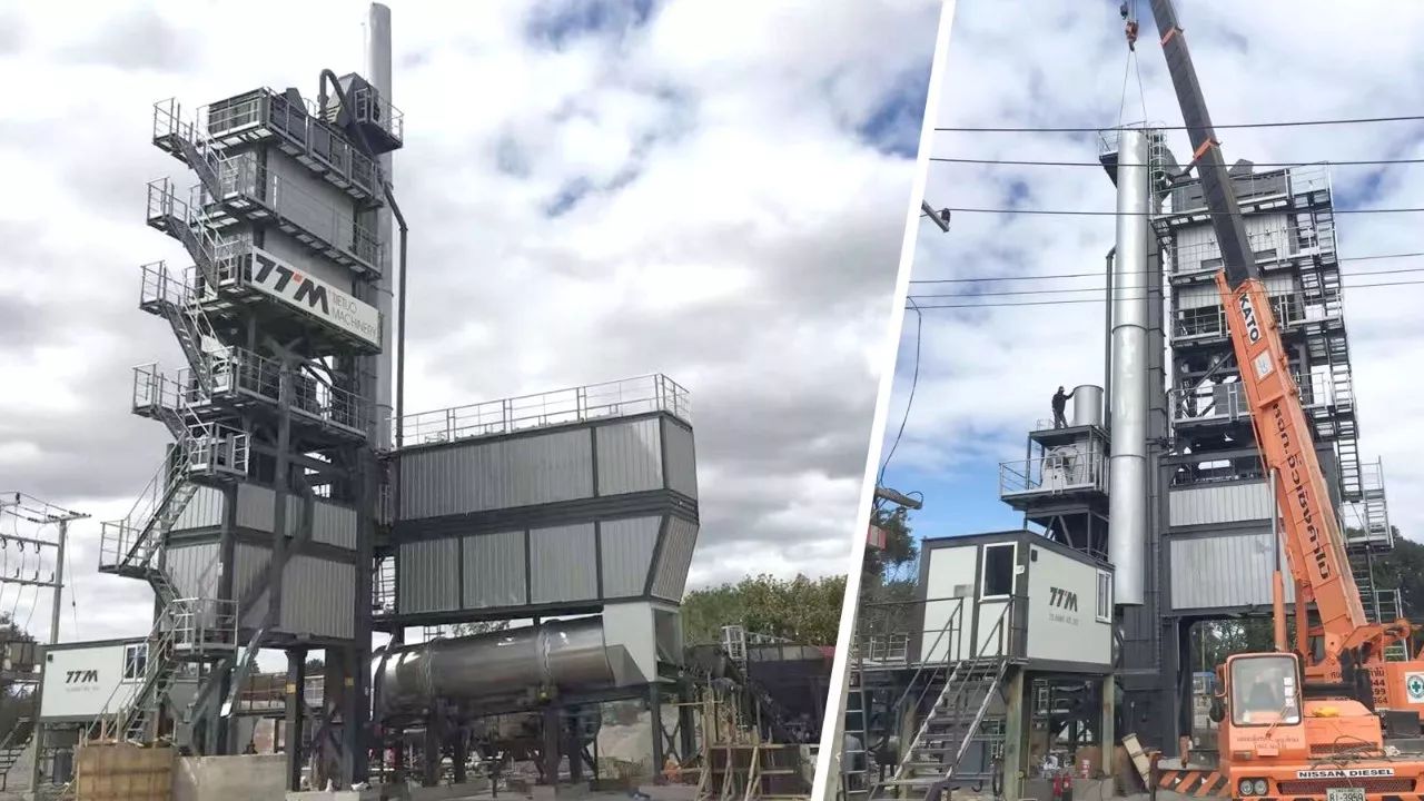 香港TS系列瀝青廠拌熱再生一體設備緊張安裝中,鐵拓機械安裝人員假日無歇,保證設備安裝進度。