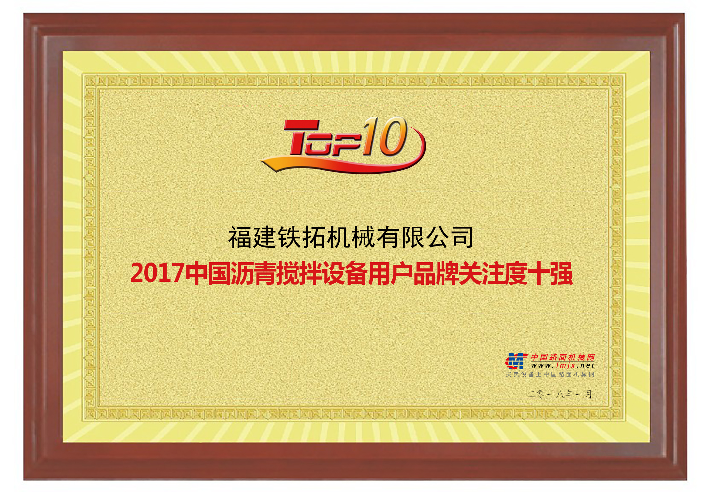 鐵拓機械再次榮登“2017年中國瀝青攪拌設(shè)備品牌關(guān)注度十強”榜單