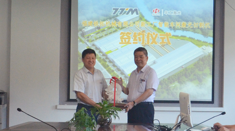 簽約會上,鐵拓機械董事長表示:“這次選擇華工激光,看中的就是產品和服務方面的優勢。因為我們車間有一臺已經用了三年的設備了,所以我們很清楚華工激光產品質量和售后服務。”