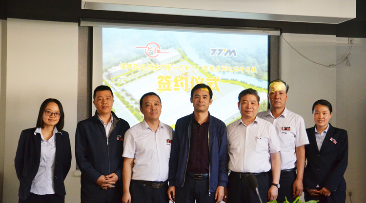 10月30日下午,福建鐵拓機械有限公司與江蘇華耀機械制造有限公司牽手合作,智能化新工廠建設又一先進轉運設備采購項目落定。此次采購的設備是由江蘇華耀機械制造有限公司生產制造的低壓軌道供電電動平車,總共9臺。雙方代表就該采購項目在鐵拓機械正式簽約。