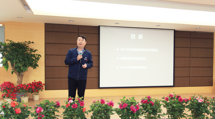 隨后,技術研發中心總監黨森紀、營銷中心總監李水才、生產運營中心總監高國強、財務總監莊學忠、管理中心總監王學峰分別對本中心年度進行總結匯報和發布2019年工作計劃。會議最后由董事長王希仁做最后總結。