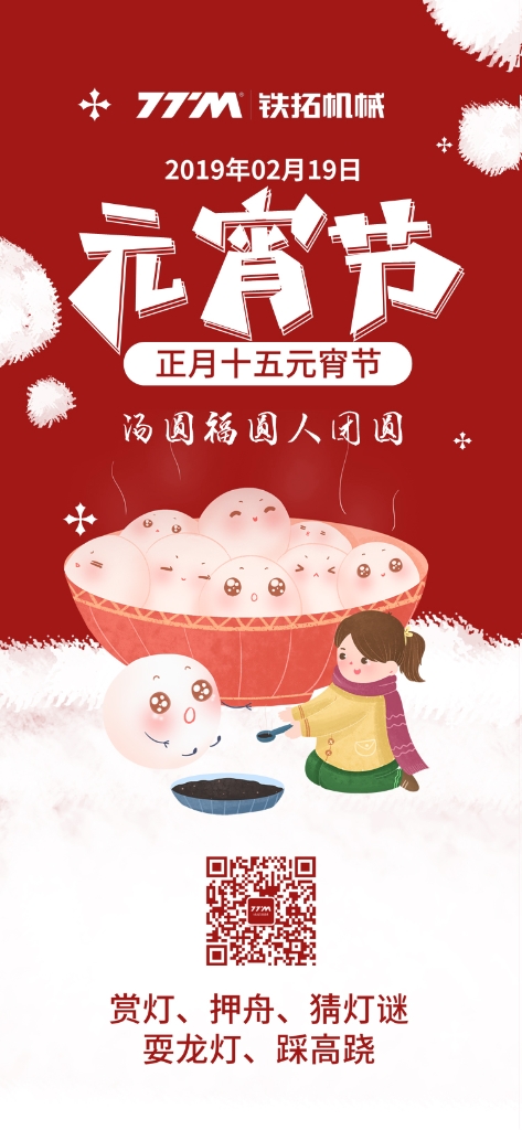 今天是正月十五元宵節,鐵拓機械祝大家: