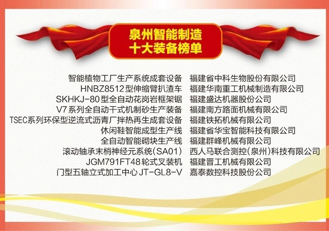 “2018泉州智能制造十大裝備”榜單